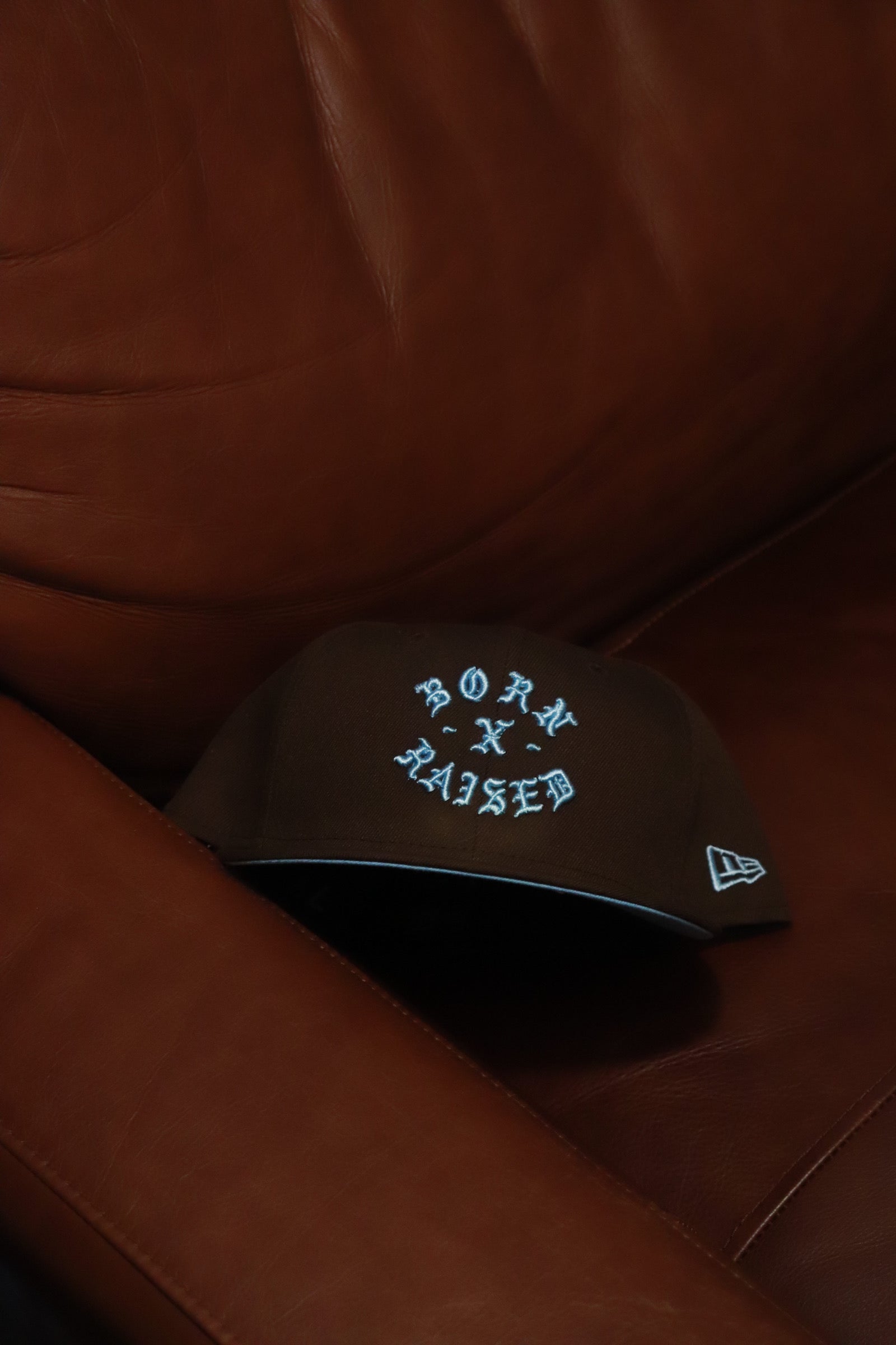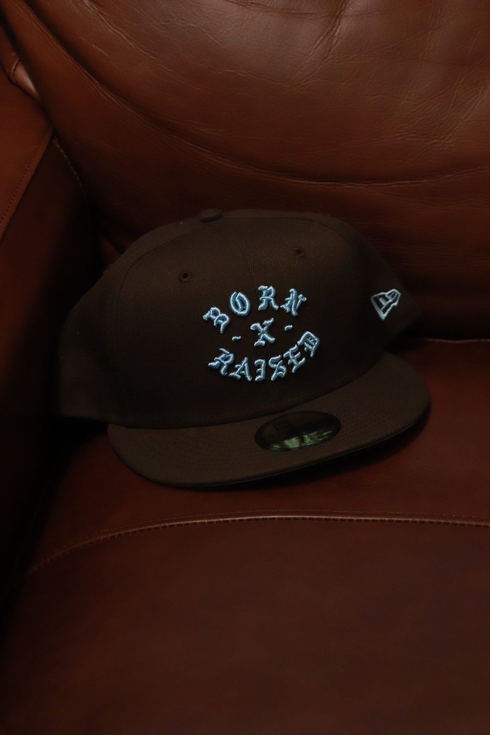 BORN X RAISED NEW ERA FITTED ROCKER HAT WALNUT / BABY BLUE