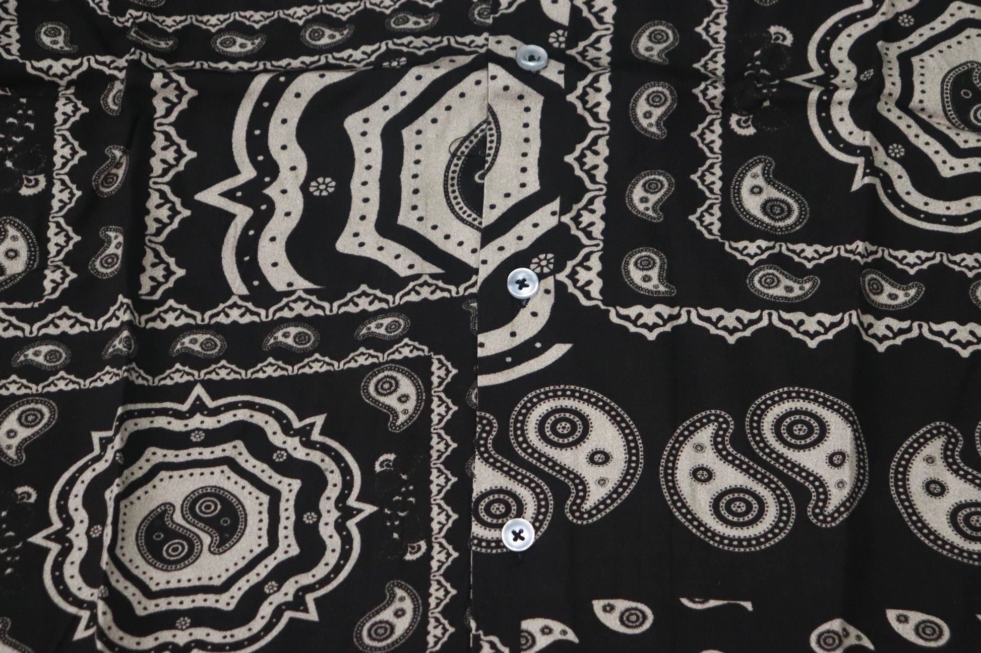 クールなペイズリー柄と100%ビスコースのサラッとした生地感が最高です。