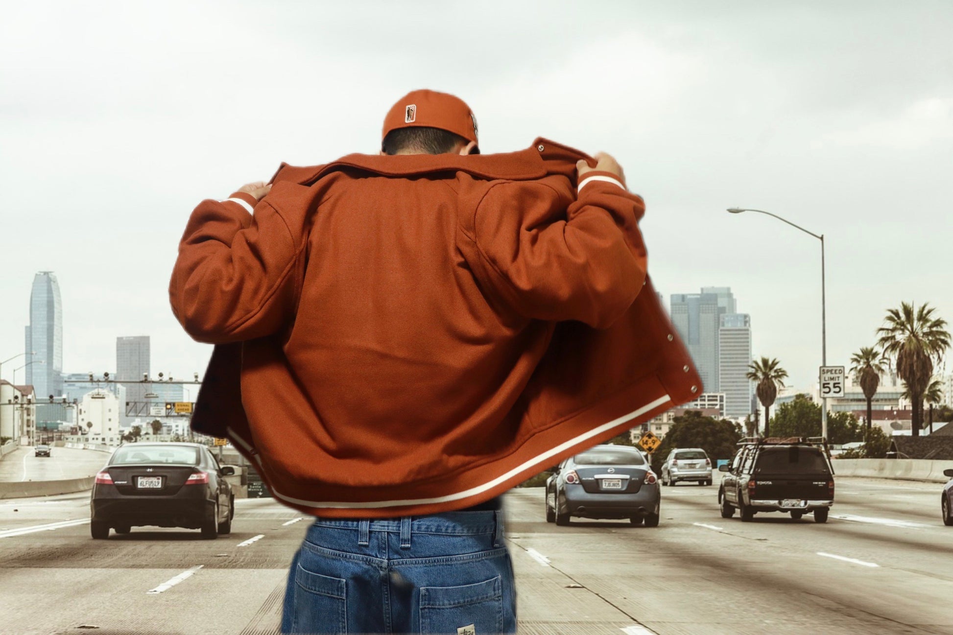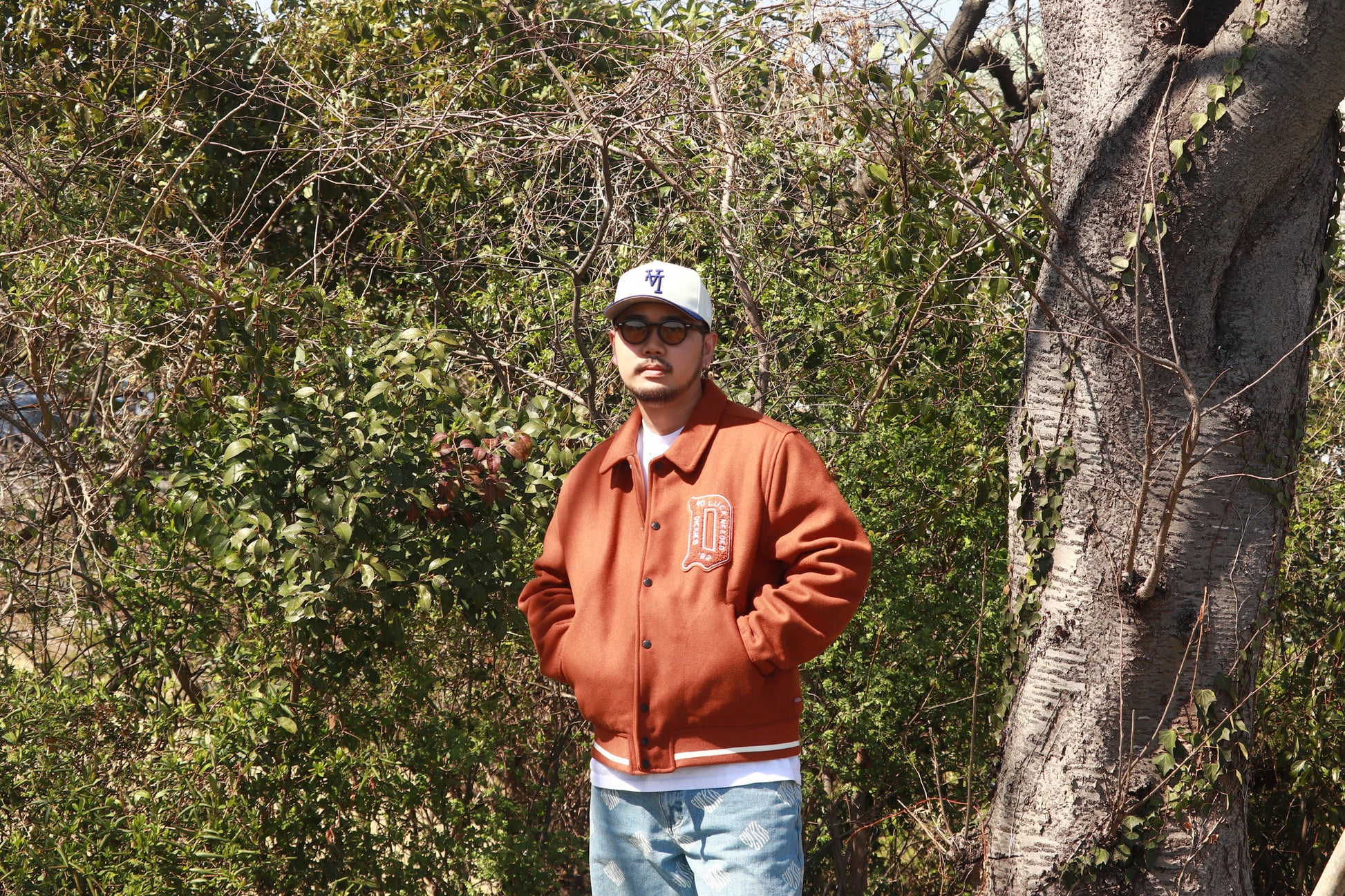 温かみのあるウールの生地感にフロントにはタオル生地のような質感の刺繍が施されています。