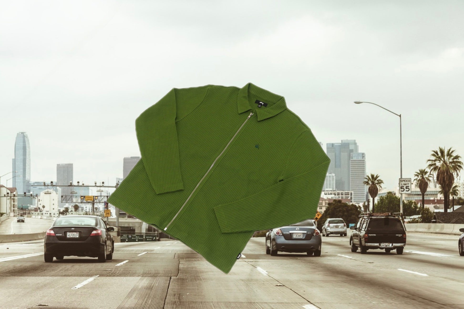 STUSSY waffle zipup knit