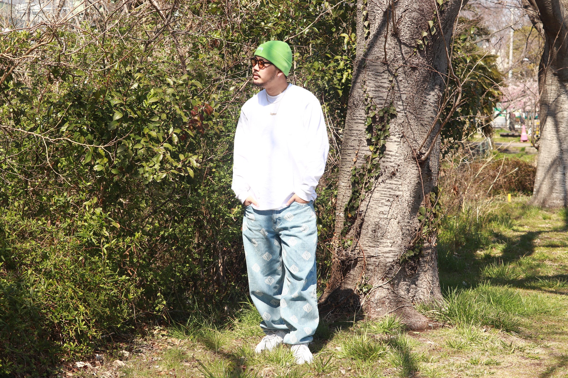 全体的に暗めなスタイリングの時に差し色で被ると通な雰囲気になります。