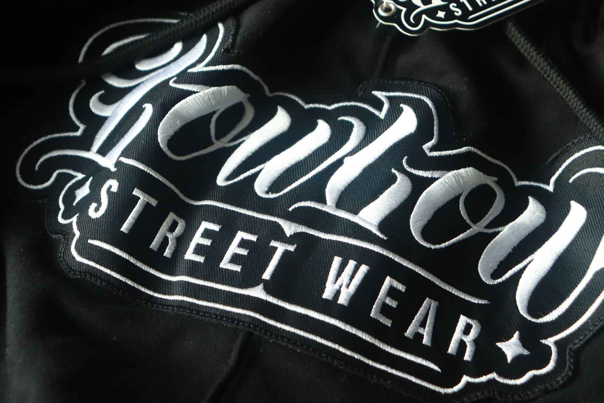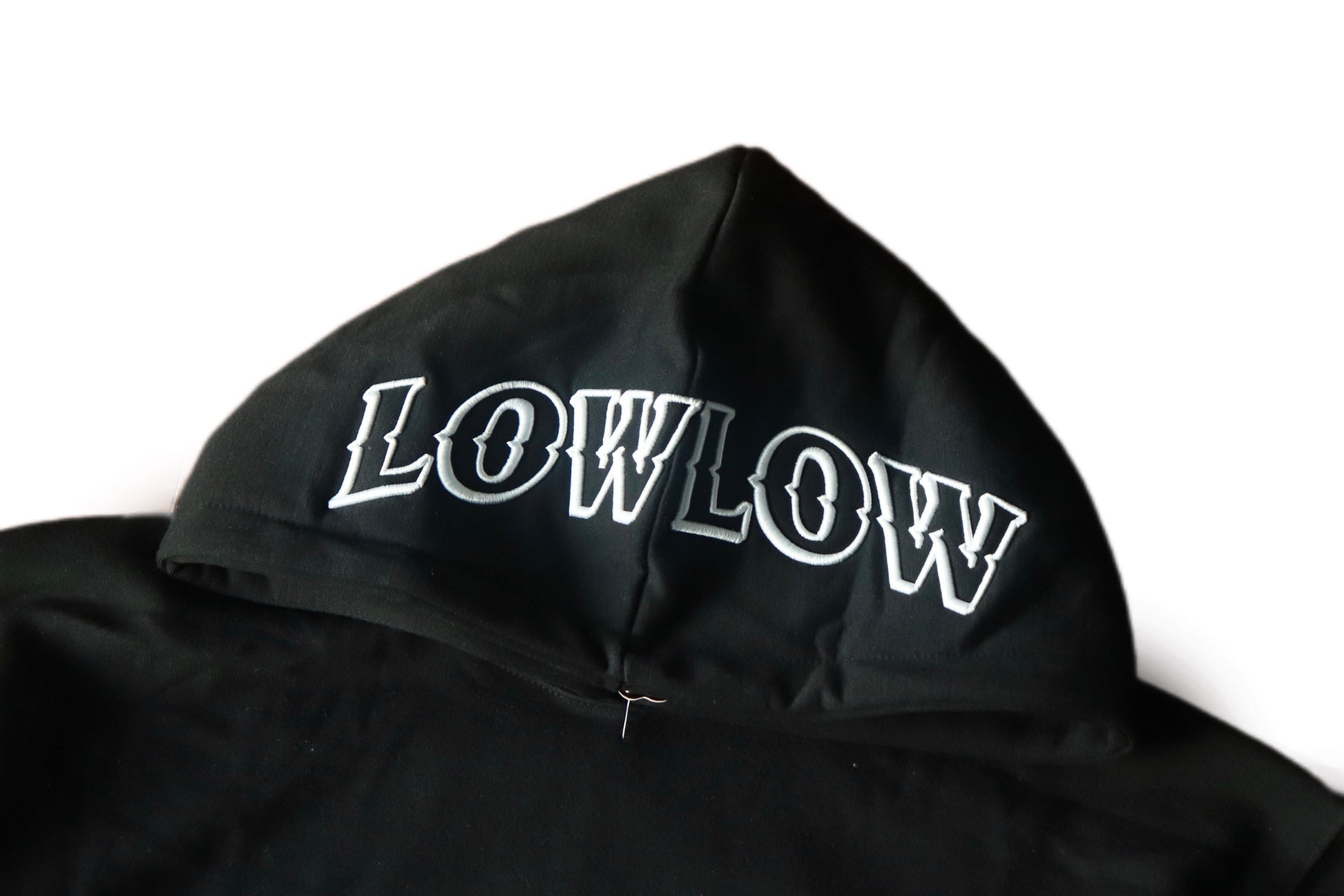 フードにはLOWLOW刺繍、バックにはL刺繍、フロントにはブランドロゴのワッペン刺繍、左腕にはラバータグといったひとつのhoodieにこんなにも拘って作っています。